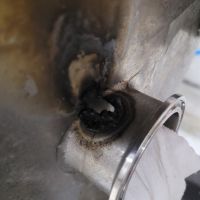 Для наглядности в кламп вставил белую тряпку, чтоб дыру разглядеть можно было.