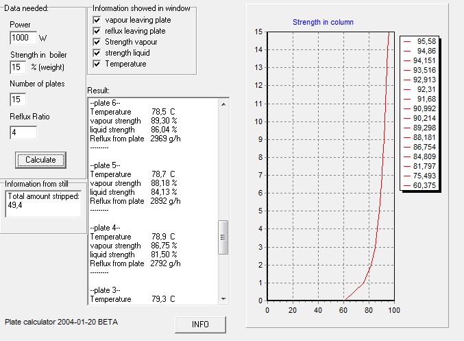 Если в отборе не азеотроп (в переводе на объемные, 95,5% примерно), и кол-во тарелок меньше, то такая же разница будет между 8 и 4 тарелками, при тех же 78,2С наверху. Т.е. физически, нижний градусник в середине колонны. Скрин делать не буду, поверьте на слово.