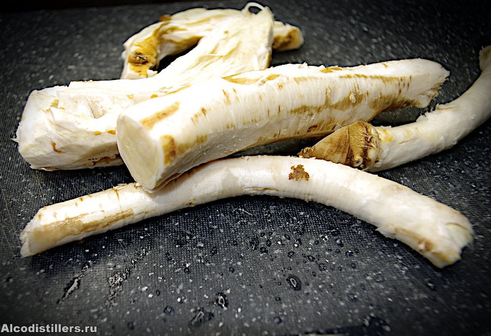 Мороженый: много отходов, после снятия кожуры сердцевина корня мягкая, скользкая, при резке выделяется сок. И как я заметил фильтруется дольше, осадка много, взвеси эти долго оседают.