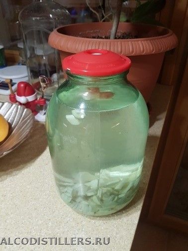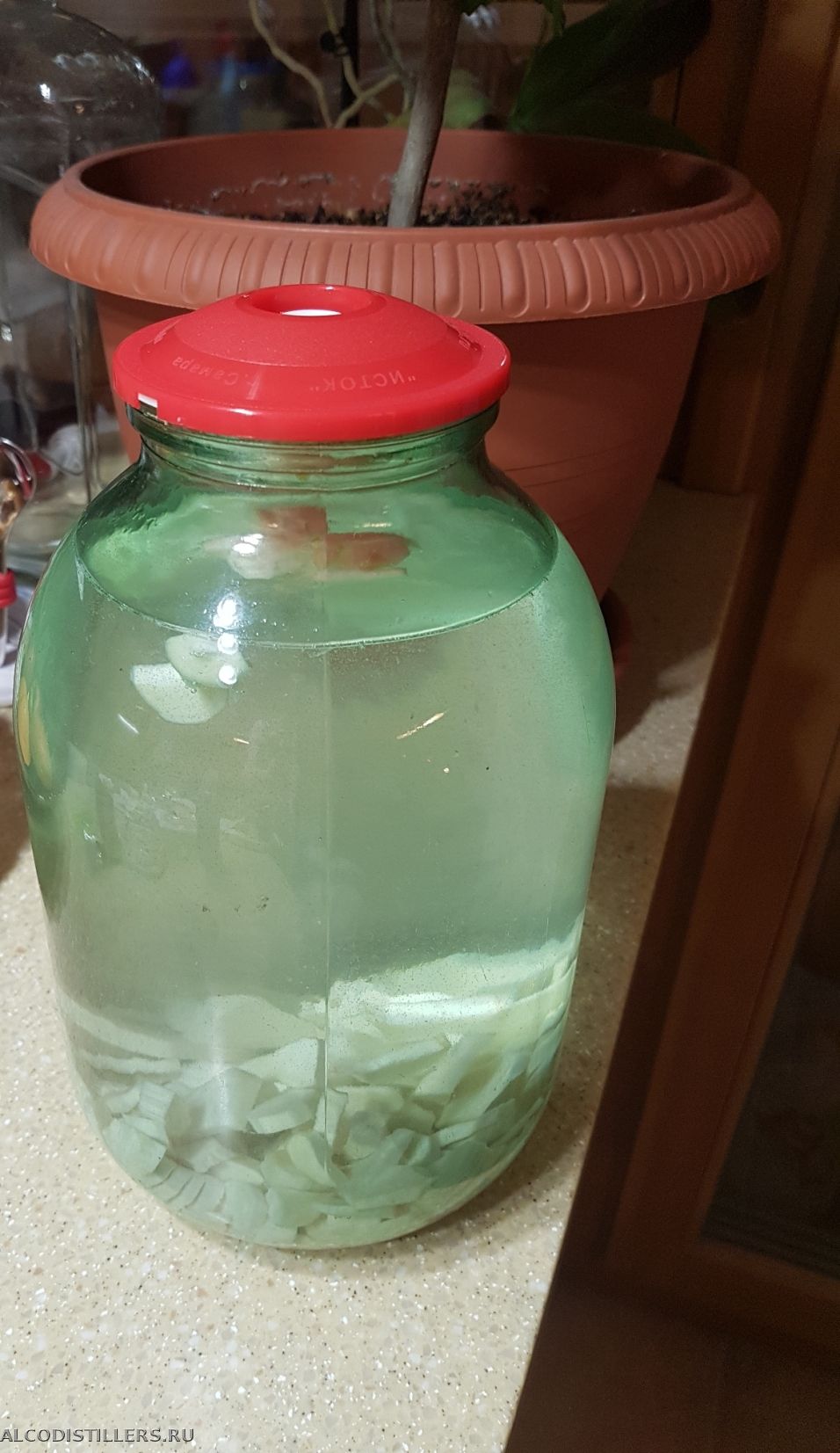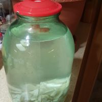 добавил меда 60 г., хрена 180 г, залил 3-мя литрами. Под рукой оказалась крышка вакуумная, использовал ее.