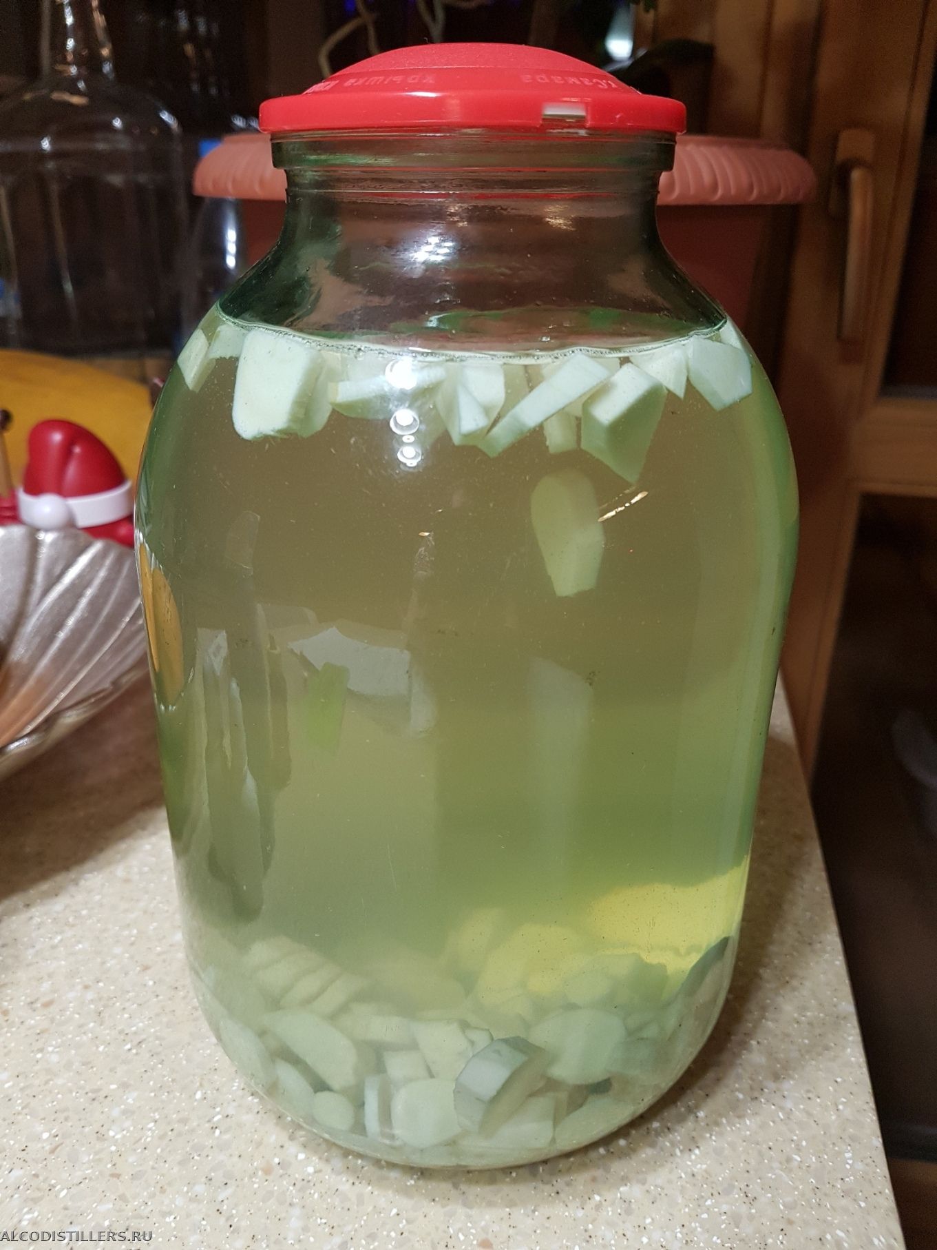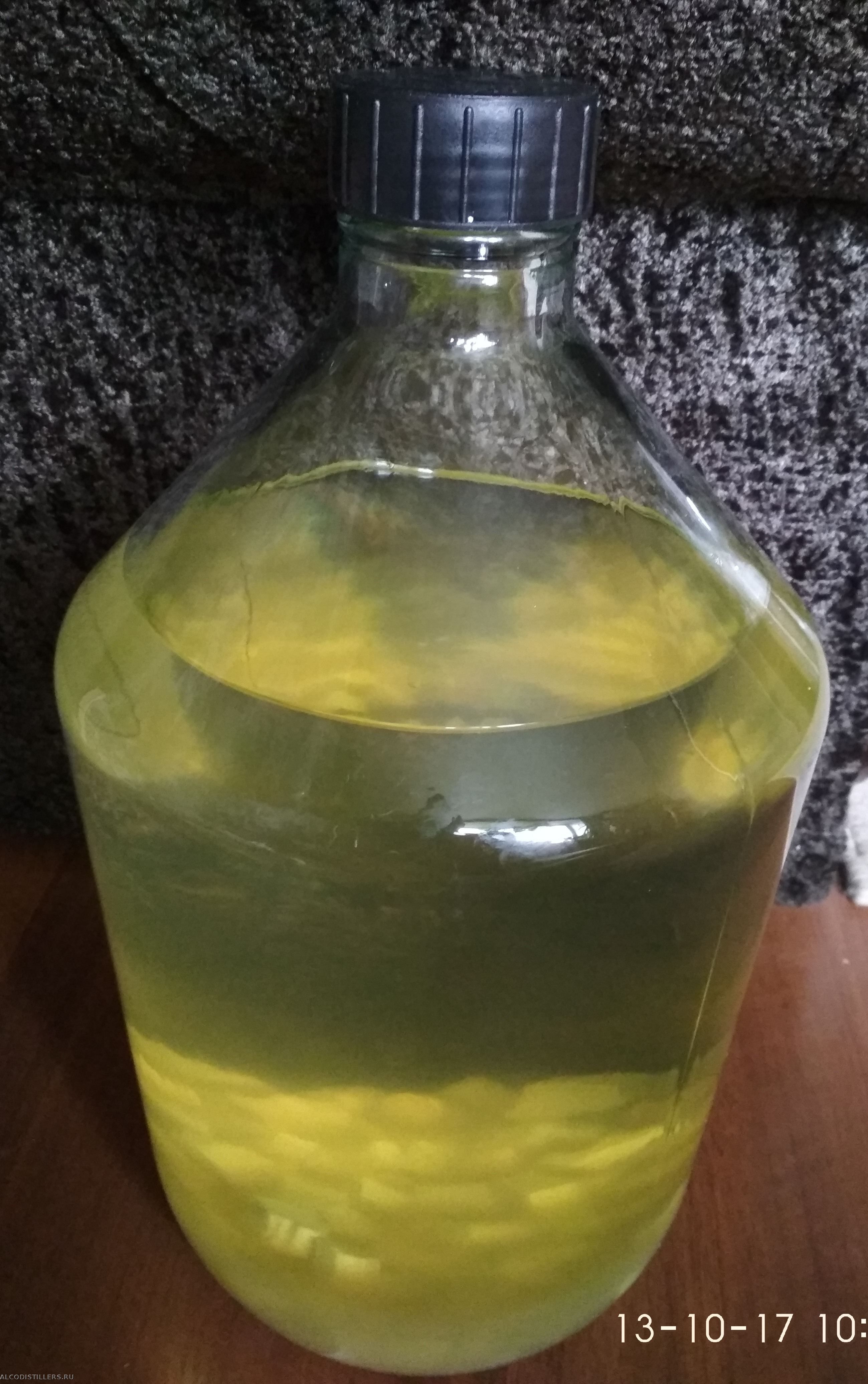 Дистиллят как в рецепте, разбавленный до 45 об. дожидался своего часа,
