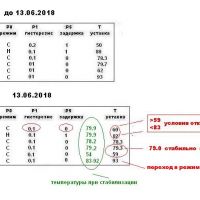 При проведении последнего прогона изменил настройки термостатов, указанны в таблице.