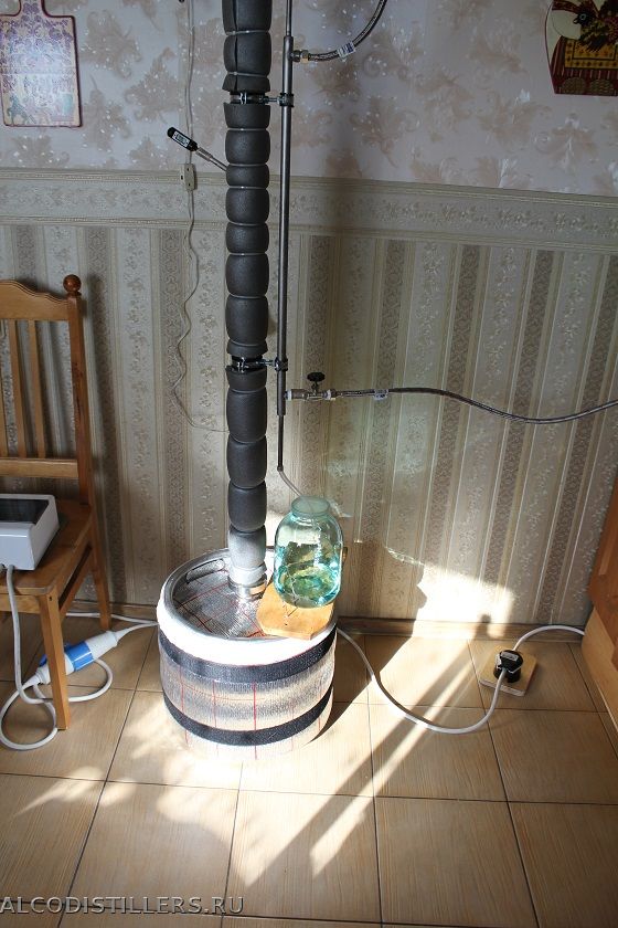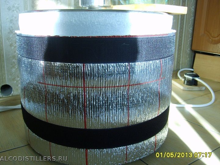 я натянул еще одну "кишку" утеплителя на царгу, утеплил куб и перед ректификацией еще его укутываю.