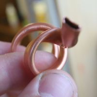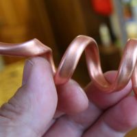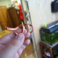 попробовал сегодня намотать двухрядный димрот. трубка 6,35, кондиционерная, с замороженной водой. оправка 12 мм. виток к витку, но сминает в лапшу. на фото уже разогнутая. есть вариант в 8 мм со стенкой 2 мм. как вариант пройти по ней резцом или грубой наждачкой 50-70 для увеличения поверхности. 6 мм сегодня найти не удалось, только по 2,2 метра от газели.