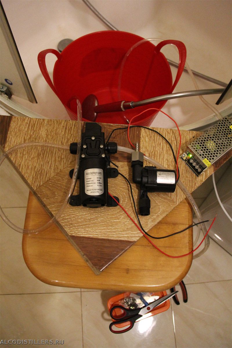 40 л на ректификации, думаю, может хватить на пол дня, ну на треть. Принимается, но гидроаккумулятор для водоснабжения - не бюджетно. Сначала потренеруюсь с тем красным ведром (оно 15 л), что было частью испытательного стенда - ну, побегаю почаще...