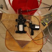 Прервый тест - Пролил обоих - первый перекачал 5 л воды за 1 мин 35 сек (3,16 л/мин), второй - те же 5 л за 1 мин и 17 сек (3,9 л/мин)