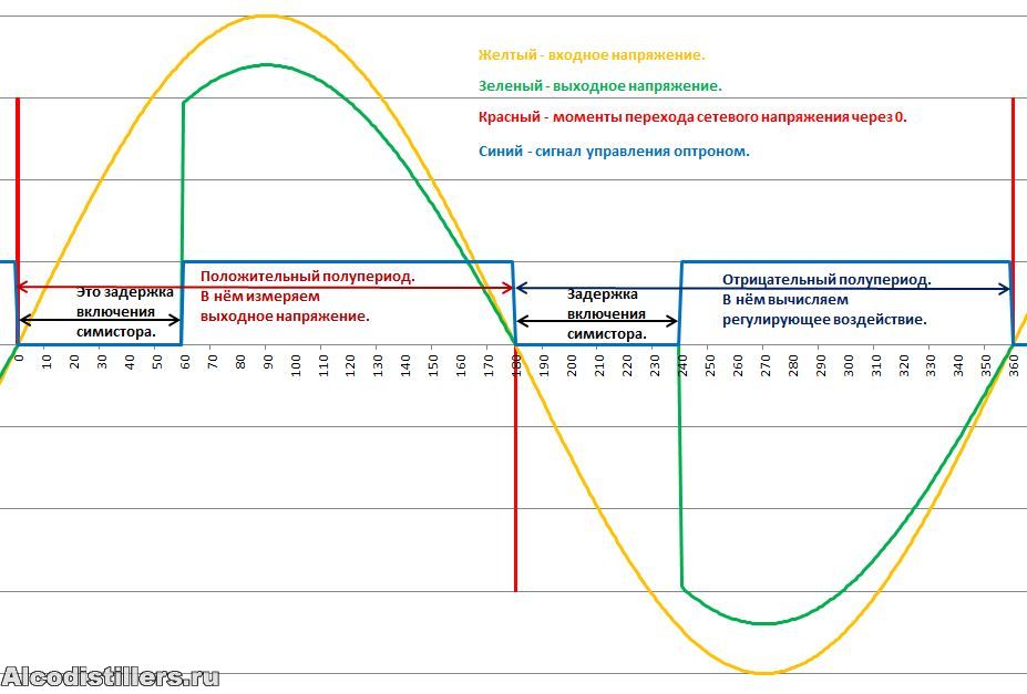 В основе алгоритма лежит обработка прерываний по событию перехода сетевого напряжения через 0 на входе INT0,
