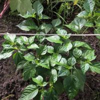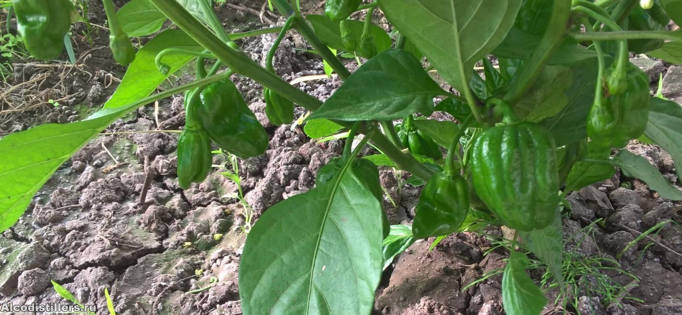 А это - двухлетка хабанеро. Весной был высажен в грунт. Долго мудрил, сбрасывал сцвет. В итоге был обрезан на пенек. И дело пошло. Куст разросся. Появились плоды. В зеленом виде даже лучше, чем зрелый. Аромат тот же, но количество капсаицина пока позоляет его кушать вприкуску со щами.