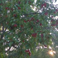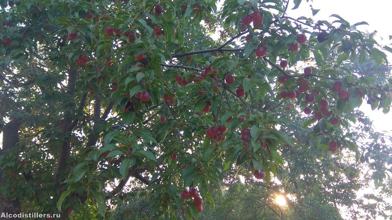 Алыча. Падает и гниёт. Кислая, сока мало. Но тень даёт.