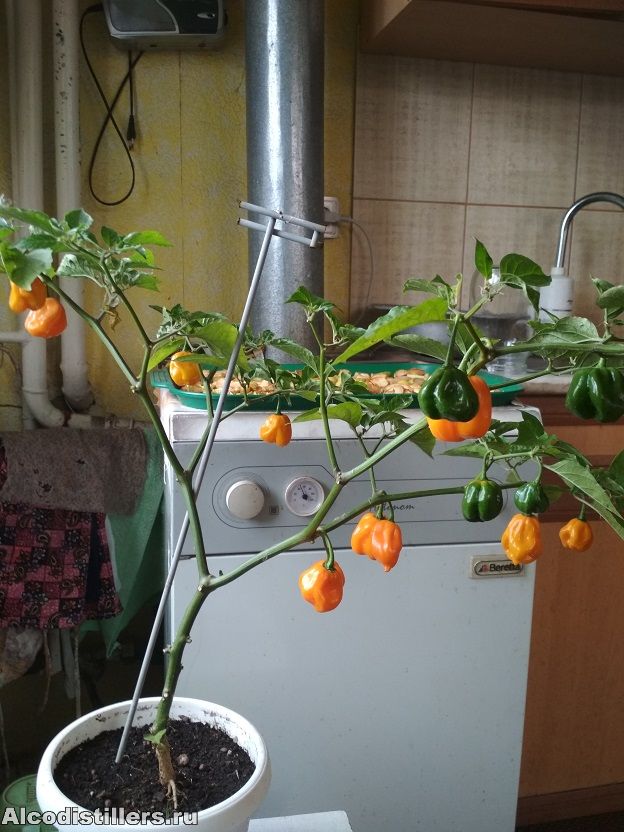 Ну и наконец, благодаря форумчанину и земляку Александру (alex5sh) из 2-х семечек был выращен один куст хабанерика, который жил все лето на улице в горшке, и только в конце октября перед морозами занесен в дом на дозаривание:![]()