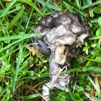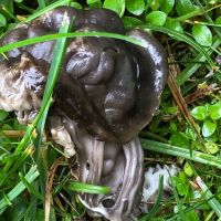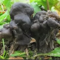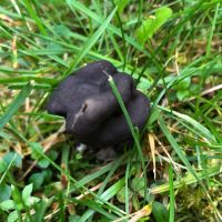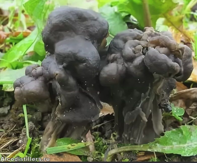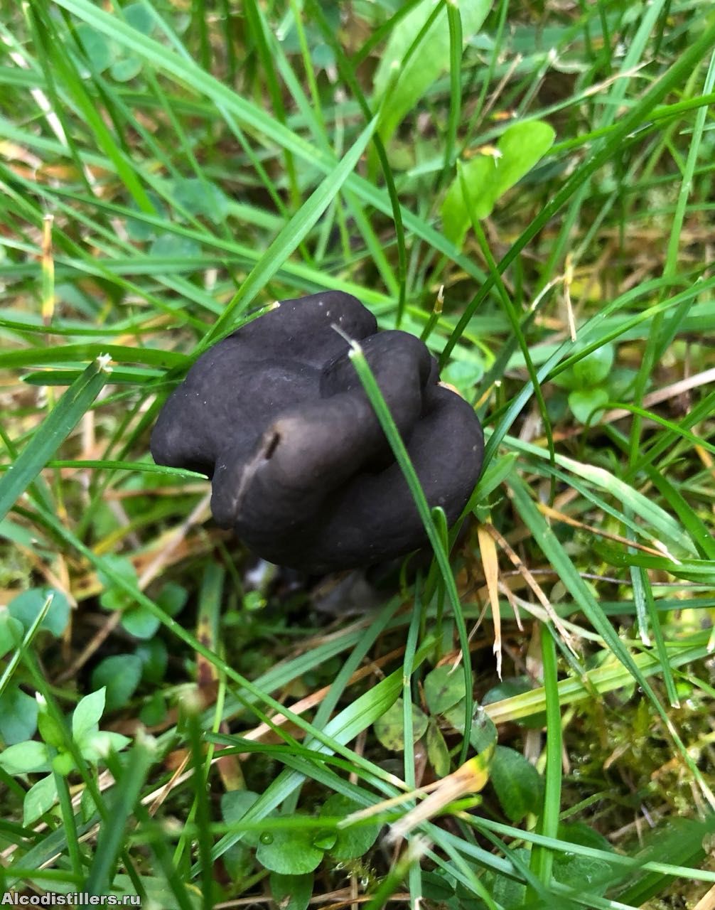 Это не какашки, это, я думаю,  - Helvella lacunosa, Лопастник бороздчатый. Гриб такой, условно съедобный.
