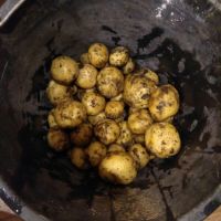 А я сегодня молодой картошки пол ведра накопал. Нет, я не в бреду, действительно молодая, 2-4 см в диаметре, сажали штук двадцать в начале июля. На прошлой неделе кусты еще зеленые стояли, а сегодня приехал на дачу - посохли уже. У нас в среднем +6-15 и дожди, решил выкопать.![]()