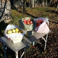 Яблоки часть падалица, часть трусил деревья.