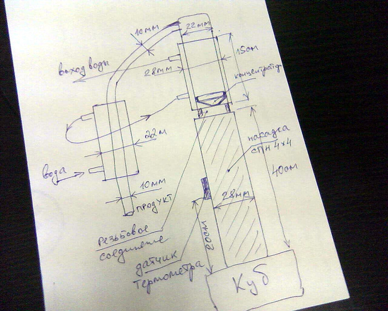 Иными словами, я теперь имею общих потерь продукта в районе 21-22%. что по сравнению с потерями в 50% (так было раньше) просто охрененный результат. Можно было ещё подождать, так как ещё капало, но уже очень медленно. Температура на термометре в 20см от куба была стабильной 77,2-77,3С. Но что ещё понравилось, это то, что теперь не надо ловить микроны напора охлаждения. Диапазон регулировки стал широким и плавным.