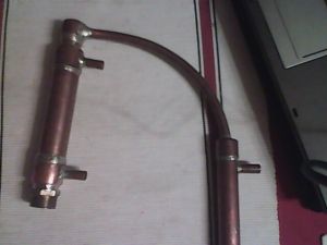 От своего коротыша я отрезал верхнюю часть, это дефлегматор с трубой снижения и холодильником. На нижней его стороне припаял резьбовой фитинг на пол дюйма. Внутренняя труба дефа 22мм, рубашка охлаждения 28мм, если помните. За счёт резьбы, этот деф можно привинчивать к разным царгам.