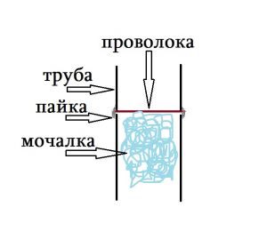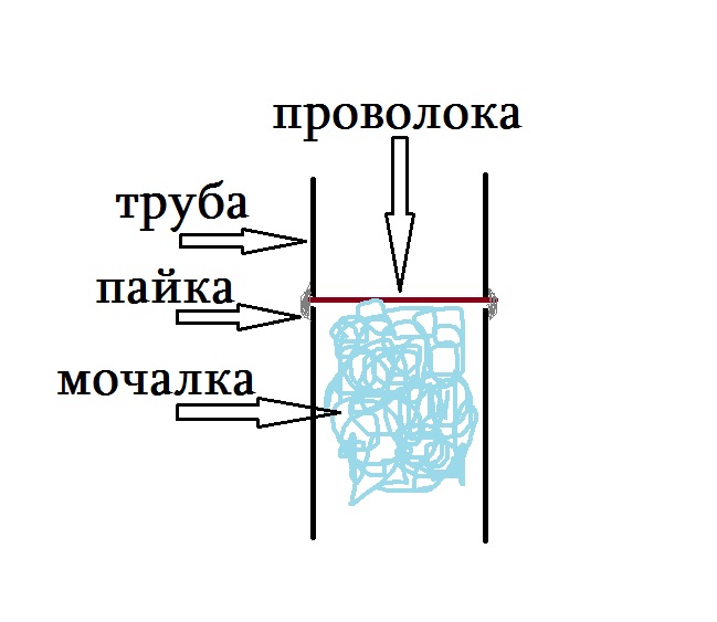 Просверлить в стенке трубы сквозное отверстие, вставить медную проволоку