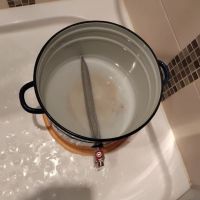 Наигравшись с заторами и пивом, используя 16 литровую кастрюлю с базукой, возмутившичь, что в брухе остаётся много сусла, решил увеличить объем и сделать в новую ёмкость фальшдно. После недолгих поисков в гараже у родственника нашлась 47-литровая кастрюля.
