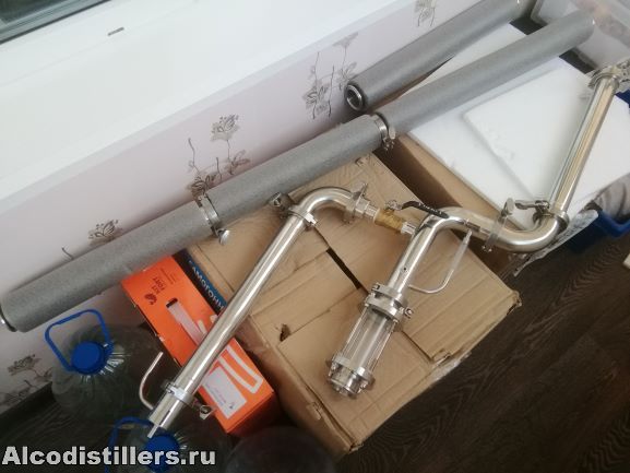 РК - ЭМочка; царги: нержа 1400 мм с СПН для спирта, медная 1000 мм с мочалками для ароматных дистиллятов; диоптр; баки 20 и 50 л; плитка индукция 3,5 кВт