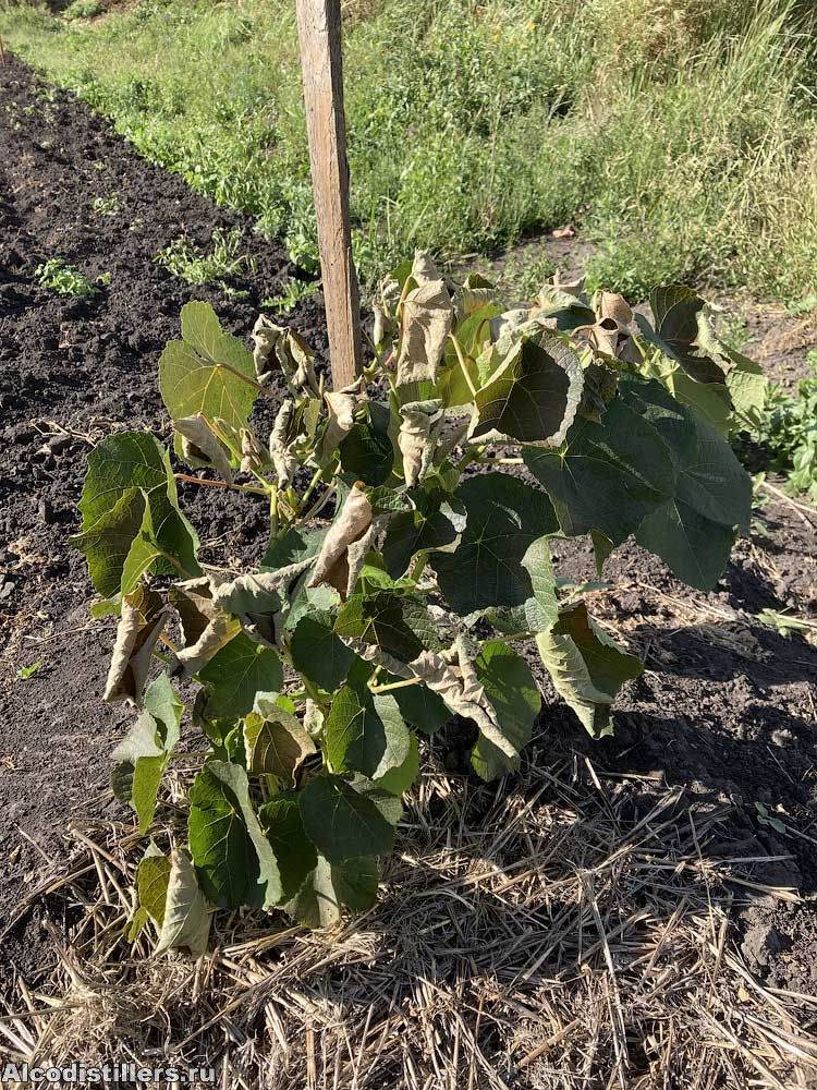 В прошлые выходные слегка подмёрзли молодые листья на винограде.