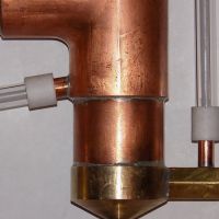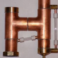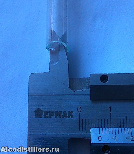 Трубочка 8мм по наруже, внутри 6мм. Она конечно не идеальная, есть овал+-0,1мм. На перелив трубочка медная тоже 8мм, так что там просто втулка. А вот там где уровень, там я впаял трубочку 6,35мм, не думал, что так буду со стеклом делать. Так вот тут пришлось делать в виде стаканчика, внутри получается 6,35мм и переход на 8мм.