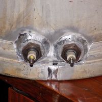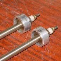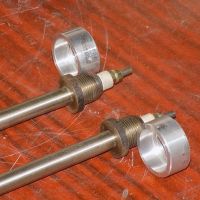 Ну вот добрался до бака. Все таки пришлось придумать некоторые исхищрения, что бы ТЭН впаять как можно ниже. Итого получилось, что остаток составит примерно 2,5 л. Выточил вот такие стаканы с углублением, что бы ТЭН можно было вставить тка, что бы осталось место под гайки для затягивания, ну и что бы бак не бить и не ровнять плоскость для удобства установки. Решил, что такой вариант будет надежней и эстетичней что ли.