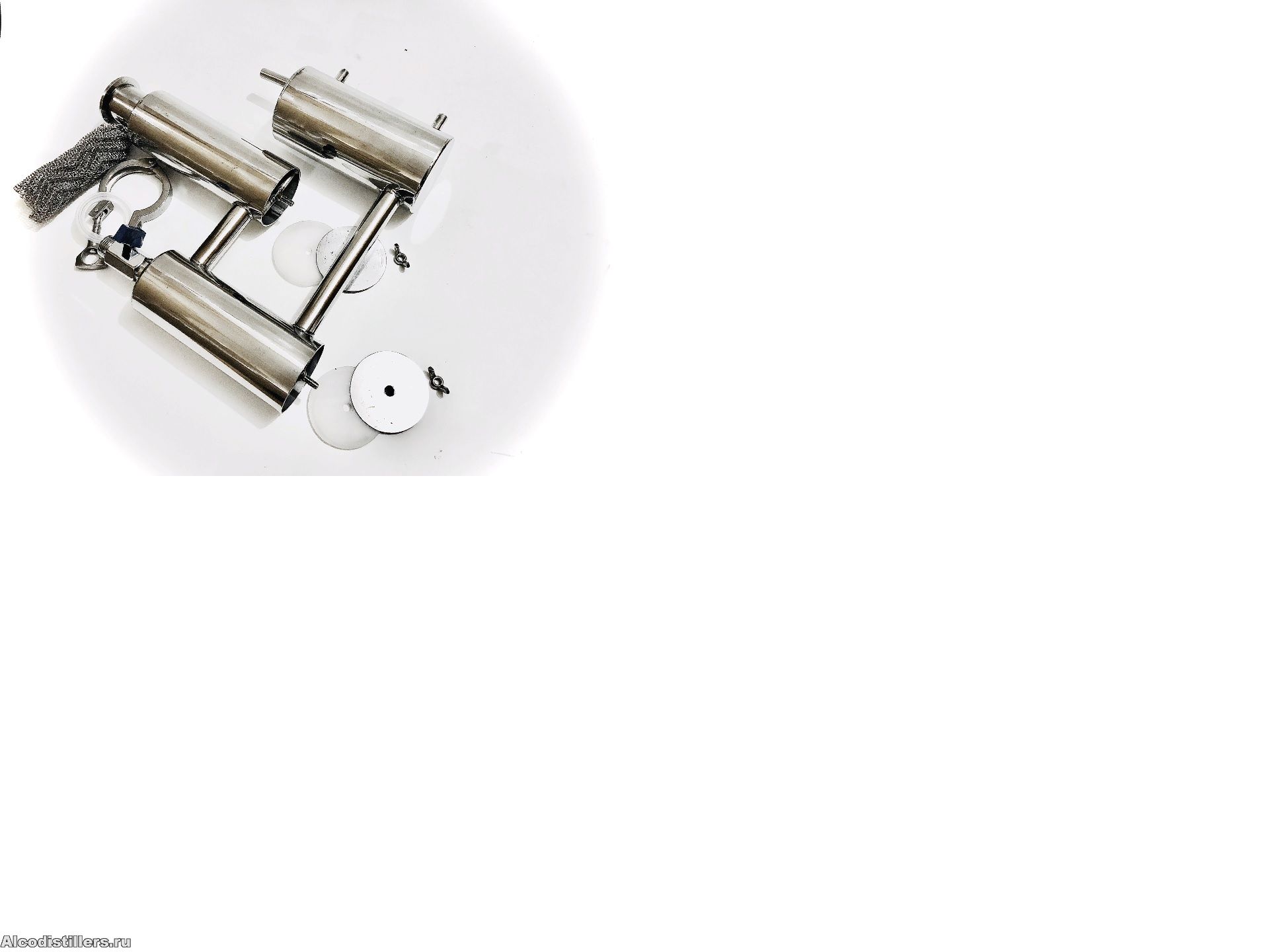 1,5 дюймовая 50 см царга,5 медных РПН,кожухотрубный дефлегматор 2 кВт(по производителю) и нечто невообразимое сверху