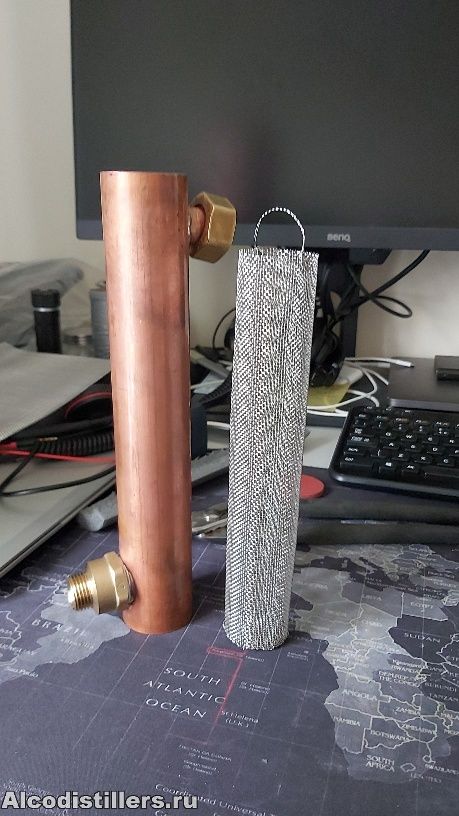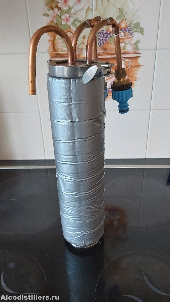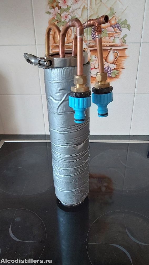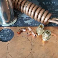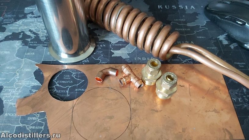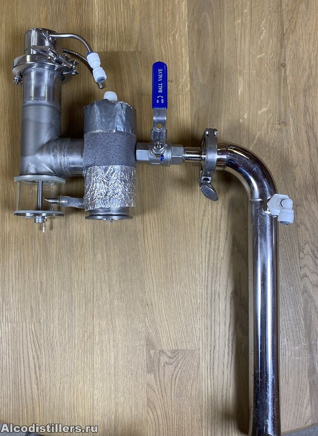 Сам димрот присоединяется к рубашке с помощью клампа - для этого у димрота сделана крышка-пластина, которая через силиконовую прокладку плотно сидит на рубашке. Наскоро проверил - вроде потеков из мест пайки нет. Нужно тестировать в следующий погон.