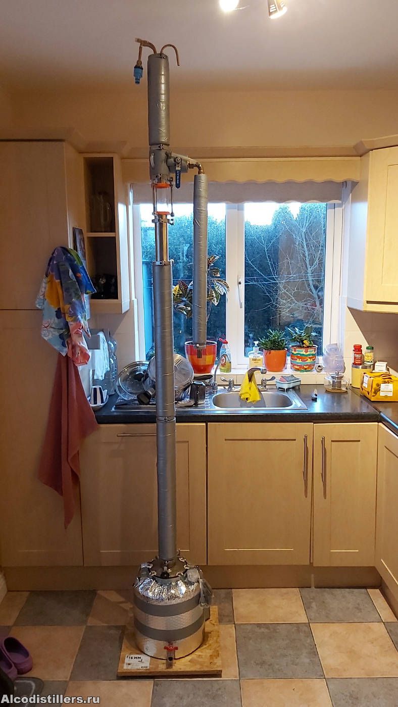 Ну что ж, вернулся я таки и взял снова в руки шашку... 3 недели бродила сахарная брага - это отдельная но неинтересная тема. Итак, она отбродила на 7,5 Брикс при стартовых 22,5. Перегон на СС дал мне около 9л 40%. Сегодня я зарядил этот СС на РК, предварительно добавив в куб 1л воды - разбавить чуть 40% и гарантировать покрытие тэнов.