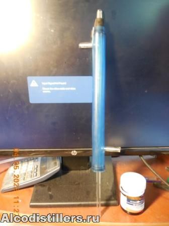 , за час сваял доохладитель, на неделе делал СС на бражной установке, в нее вмазал узел отбора по жидкости, понадобился небольшой доохладитель, посмотрю как будет работать, м.б. от высокой температуры трубки стеклянные на ПВХ держаться не будут, а м.б и будут. Внизу пробка от шприца на 10мл. второй пробки на 14 не нашел.