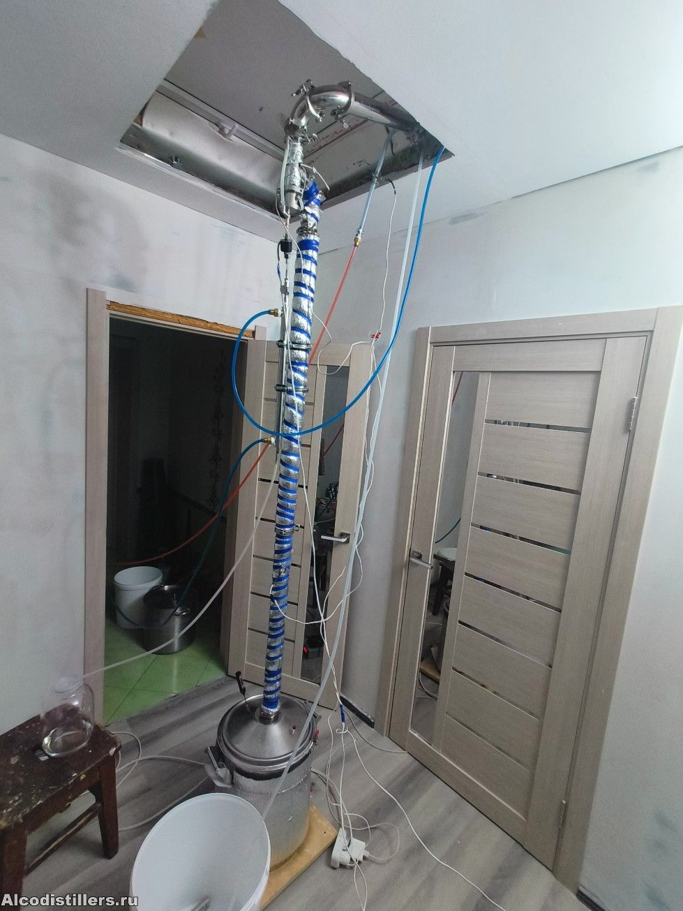 Прибавляешь мощность. Постепенно и наблюдаешь за колонной. Отбор либо закрыть либо оставить как есть, пусть капает. Мощность поднимаешь до такого уровня, что бы в диоптре булькала флегма. Если без диоптра, то флегма в гидроуровне должна немного покачиваться вверх и вниз. Не сильно, без перелива в паропроводящую трубу. В твоём случае паропроводящая труба это горизонтальный участок тройника.