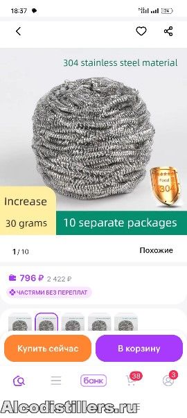 Обычной или оцинкованной? Я как раз начинал с обычной, из магнита. Она на третий прогон полностью почернела и сыпаться начала. А скажите, по чём одна мочалка из 304 стали? Я когда искал там пара то ли под 500 рубликов была. По этому я плюнул и купил спн.