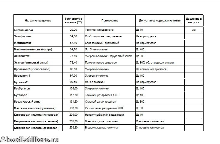 Сделал таблицу для виноградного дистиллята в екселе, а как выложить её здесь не нашёл. В таблице вводится текущее давление и получается температура кипения составляющих веществ с примечаниями.