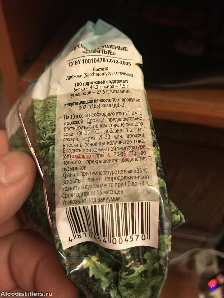 Дабы сделать яблочный бренди необходимо, в том числе, сбродить сусло. Температура брожения определяется именно конкретными дрожжами. Производитель дрожжей обычно указывает это в инструкции. Но в нашем случае (винные белорусские) производитель ничего не указывает. Я, для этих дрожжей, использую температуру 28...30 градусов, независимо от состава (фруктового) сырья. Другие примеры можно посмотреть "на просторах" по поиску, например "сидр в домашних условиях".