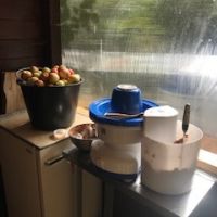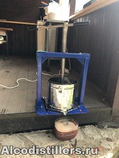 Попробовал вчера через мешковину отжать яблочную мезгу от подброда. С таким прессом как у меня проблематично.Объясню почему. Загрузка макс 5-6 кг, при отжиме пятак упирается в мезгу завернутую в мешковину, пару оборотов делаю и всё стоп, нужно ждать минуты 4, дальше не крутит, затем тоже самое, оборот винта,ждём.На отжим этого веса уходит минут 20-25, долго очень. Так что мой вывод, этот пресс хорош для солода, давно им солод отжимаю досуха. Для яблок хорош и нужен такой как на фото у коллег.Но я пока до такого не созрел, если прижмёт очень, то придётся делать.Спасибо всем кто поделился опытом.
