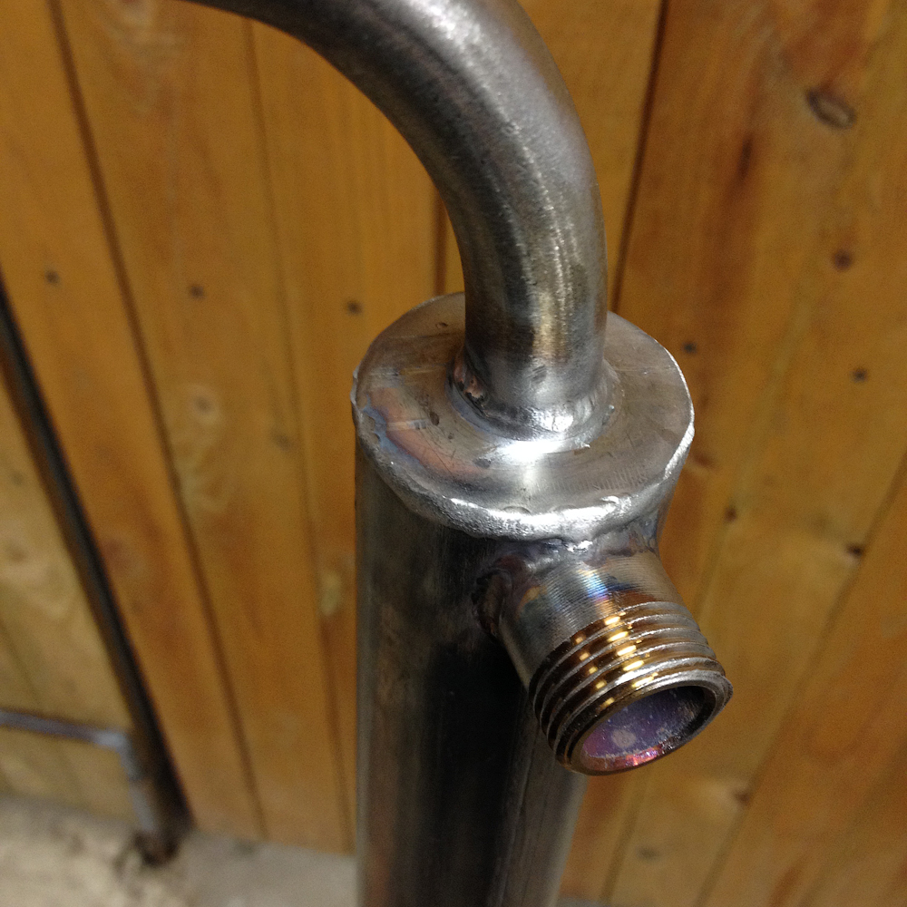 Ещё забыл написать, в начале трубы с внутренней стороны нарезана резьба через которую будет крепиться к ёмкости и приварена трубка для термометра в зоне отбора пара (трубка соединяющая колонну с холодильником)