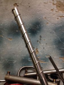 труба (царга) длиной 120см, вн. диаметр 25мм, наружный была 32мм но её проточили на токарном станке до 29мм;