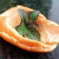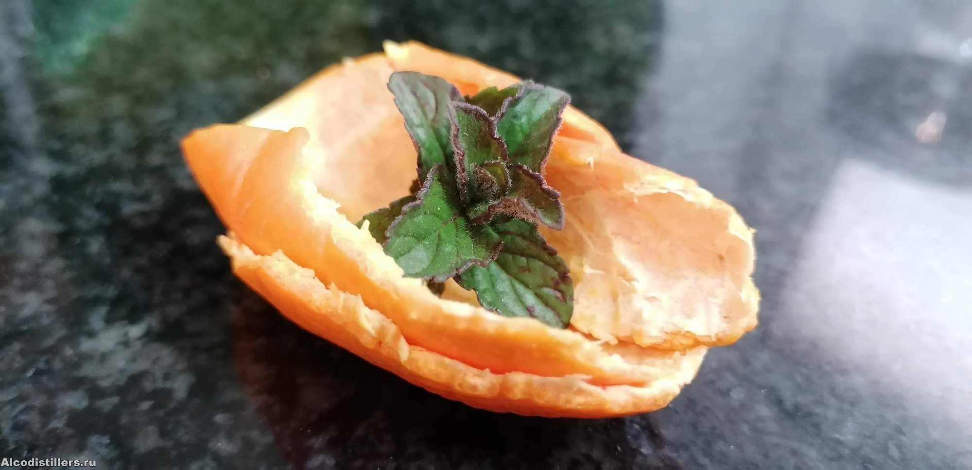 Берём кожуру мандарина и маленькую веточку мяты: