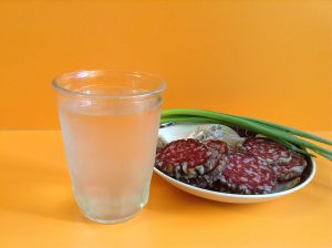 Добавил в "водку", и вот такая мутная штука получается. Но, для этого нужно водку хранить в морозилке. В обычной камере прозрачная. Так что, шоу "мутный самогон" получилось.