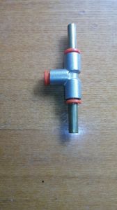 быстроразъем диаметром 6мм, датчик входит очень плотно, шланг одет на отрезки той-же 6мм медной трубки, подтеков нет, да и давление там не большое.