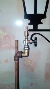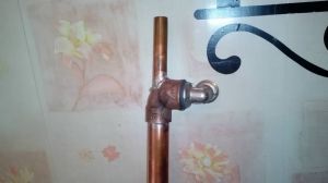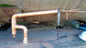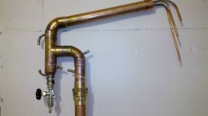 Высота головы получилась 31.5 см. В процессе пайки образовались небольшие трудности. Когда разгибал угол замял немного трубу. Да и вообще трудно его разгибать. Работал одной горелкой, непрогрев был, не так угол разогнулся как места соединения, это при том, что еще одна горелка под рукой была. "Торопиться не надо". Да к тому же у тройника один вывод с магазина замят был немного. Время и наждачная бумага выправила деформацию. Но времени на это потрачено, скажу я вам...