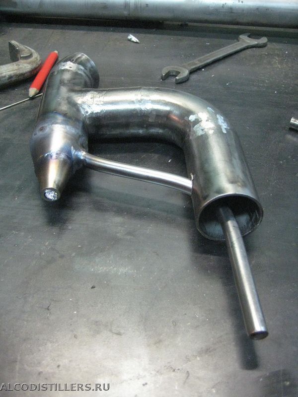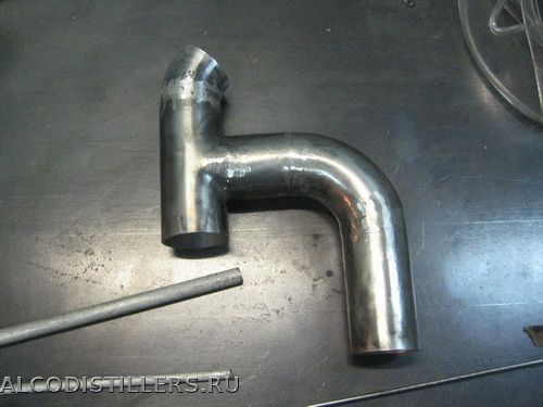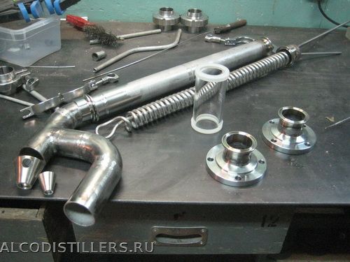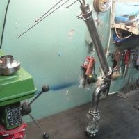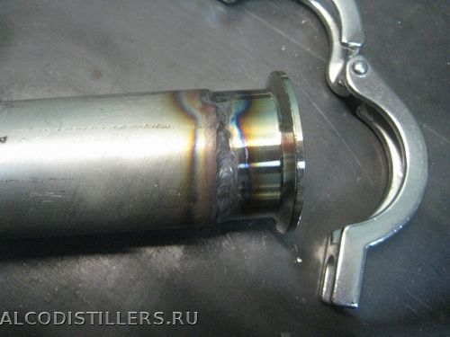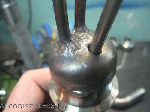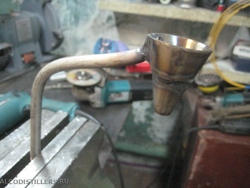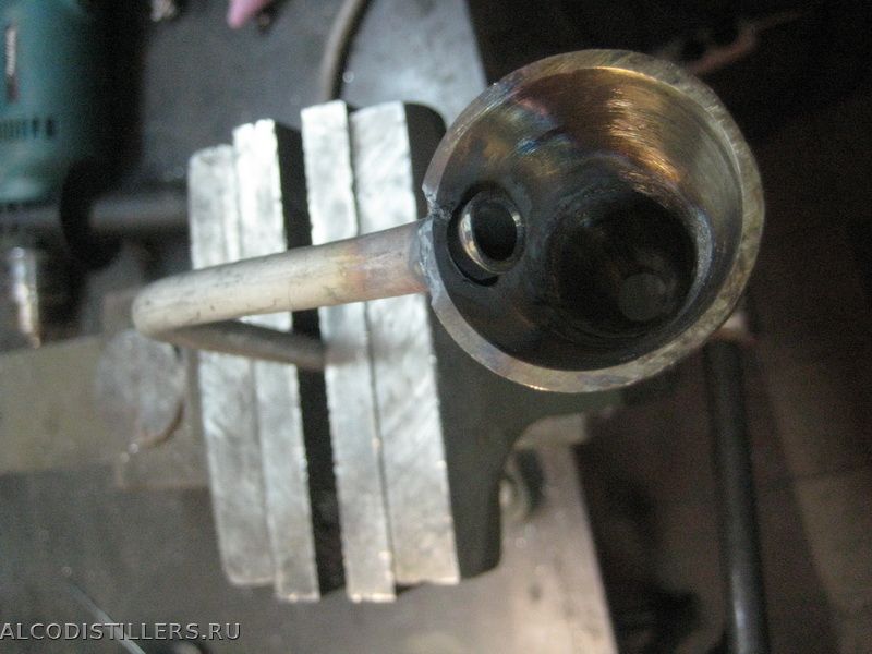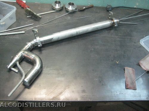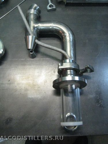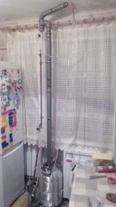 C трубкой возврата флегмы надо что-то делать. При увеличении мощности пар ее перекрывает, происходят скачки уровня флегмы. В трубке видны пузыри воздуха, идущие в обратном направлении. Сильно газу не поддашь. Может укоротить ее, слишком длинная она.