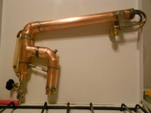 Спаяна она скажем так-некузяво. Имею ввиду внешне.Но надежно. Продувал этот трамбон в ванной, до треска в ушах, все нормуль. Потом "голова" упакуется в утеплитель, и вся некузявость спрячется.))
