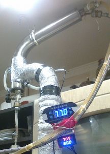 Данный термометр не очень подходит для узла отбора, т.к. на высоких температурах, показания начинают проскакивать через 0,2-03. Сегодня тестирую на колонне  еще одно китайское "чудо" термостат XD-W2308. Уже 2 часа отбираю головы, пока все четко! А W1209WK поставил вниз, там не так принципиально.