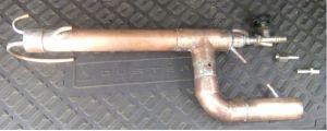 Взял отожженную трубку 6х1, ножовкой отпилил от нее кусок, угол реза около 45 градусов. Переход с тройника 35 на кран отбора был выполнен из двух переходных фитингов - 35а х 18 и 18а х 12 (в диаметре 12 нарезал резьбу 1/4" под кран). Перед сваркой фитингов и тройника в фитинге 35а х 18 просверлил отверстие под трубку отбора, трубку отбора заостренным концом вставил в фитинг до упора в стенку и пропаял  изнутри к стенке фитинга.