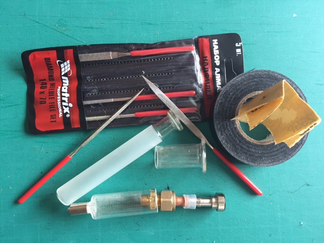 Завязываешь вокруг трубки туго х/б нитку в один виток.Капаешь на неё несколько капель горючей жидкости, только так чтобы не бежало по стеклу. У меня пошли в дело головы. Поджигаешь. Когда прогорит, резко опускаешь трубку в воду. От резкого перепада стекло трескается по линии нагрева.