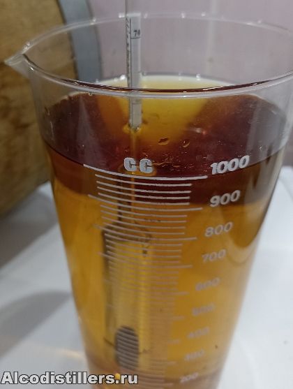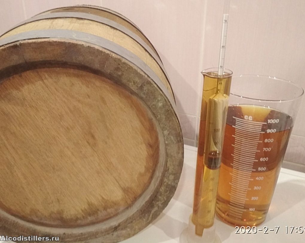 В результате, после различных проб и дегустаций получилось две части по семь литров 66%АС, как раз для залива в бочку.