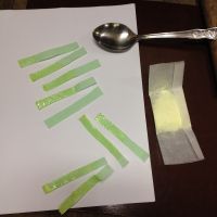 Нарезал полоски из лёгкой бумажки, вес одной полоски получился примерно 40 мг.