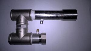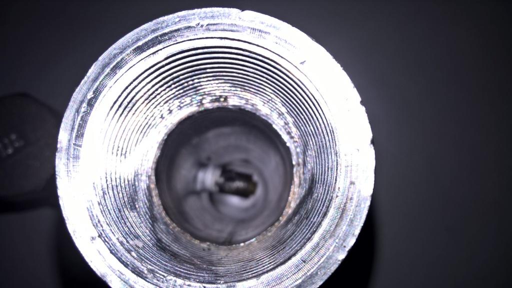 На царге штуцер из нержавейки под резьбу М10. Внутри отверстие ф6. Торец заглушен латунным винтом М6. Боковая сверловка ф6 для направления флегмы к центру.