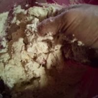 Мешал, но тесто прилипало к рукам как перчатка, добавлял по ложке муки, ржаной , и пшеничной.