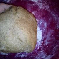 Пока не стал получаться колобок. (вполне мог наврать с первоначальной закладкой муки, т.к. отмерял муку кувшином а не весами)![]()